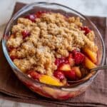 Reheat leftovers in a 350°F oven for about 10 to 15 minutes until warmed through and the topping regains its crunch. Microwaving is quicker but may soften the topping. For a crispier texture, heat uncovered, and enjoy the cozy warmth of this Peach Strawberry Crisp Recipe any time you crave a sweet fruit dessert.