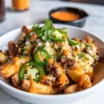 For a fun twist, try serving these fries in individual cast iron skillets or mason jar lids at your next party. Layer the ingredients for a more structured presentation or serve with a side of dipping sauce like ranch or spicy ketchup to let everyone customize their bites.