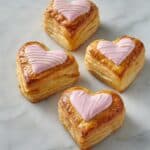 Delightful puff pastry hearts topped with a sweet vanilla icing, perfect for Valentine’s Day or a charming brunch treat. Flaky, golden, and lightly sweetened with cinnamon and sugar, these pastries are both easy to make and beautifully festive.