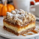 Warm individual slices in the microwave for about 15-20 seconds or reheat the whole cake in a 300°F oven for 10-15 minutes to bring back that freshly baked feeling. A quick reheat revives the buttery streusel topping and the soft pumpkin cake beneath.