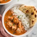 This quick and easy homemade butter chicken recipe features tender chicken thighs marinated in yogurt and spices, seared to perfection, then simmered in a creamy tomato sauce. Ready in under 2 hours, it’s a flavorful and comforting dish perfect for weeknight dinners served with naan or basmati rice.