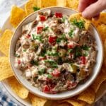 - Serve: Serve the dip warm with tortilla chips, crackers, or fresh vegetables for dipping.