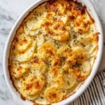 You can freeze this Scalloped Potatoes Recipe for up to 1 month. To do so, let the dish cool completely, then cover tightly with foil and a plastic wrap layer. When ready to enjoy, thaw overnight in the fridge before reheating for best texture and flavor.