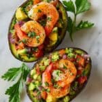 Shrimp Stuffed Avocados are a quick, fresh, and creamy appetizer or light meal perfect for warm weather. This recipe combines ripe avocados with a tangy shrimp salad, enhanced by lime juice, garlic, and herbs, creating a delicious and healthy dish ready in just 10 minutes.