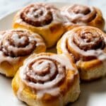 - Glaze and serve: Remove the rolls from the oven and let them cool slightly. Drizzle the prepared glaze evenly over the warm cinnamon rolls before serving.