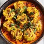 - Serve: Plate the steamed dumplings and generously spoon the Thai red curry sauce over them. Garnish with fresh cilantro and lime wedges for a bright finishing touch. Enjoy while hot for maximum flavor.