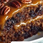 - Decorate: Sprinkle the reserved ½ cup of toasted pecans over the top of the caramel-covered cake. Let the cake set for a short while before slicing to allow the caramel to firm up slightly.