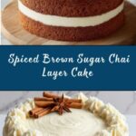 A rich and aromatic Spiced Brown Sugar Chai Layer Cake featuring warming chai spices blended into a moist cake, layered and frosted with a smooth cream cheese frosting. Perfect for gatherings or cozy evenings, this cake boasts flavors of cinnamon, cardamom, ginger, and more, creating a unique twist on classic spice cake.