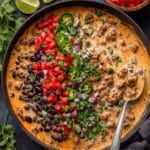Spicy Cowboy Queso Dip is a bold, creamy, and crowd-pleasing appetizer packed with melted cheese, spicy sausage, tomatoes, black beans, and jalapeños. Perfect for game day, parties, or any time you need a delicious dip, this one-pot recipe delivers layers of Tex-Mex flavor with just the right amount of heat.