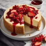 A luscious, creamy Strawberry Swirl Cheesecake featuring a buttery graham cracker crust, smooth cream cheese filling, and a vibrant homemade strawberry swirl for a perfect balance of richness and fruitiness.