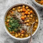 Freeze the curry (without the chickpeas) in a freezer-safe container for up to 3 months. When you’re ready to enjoy, thaw overnight in the fridge before reheating gently on the stove.