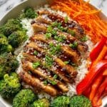 This Teriyaki Chicken Bowl recipe features tender boneless chicken thighs cooked in a flavorful homemade teriyaki sauce, paired with steamed and sautéed vegetables, all served over fluffy steamed rice. A quick and satisfying meal ready in just 35 minutes, perfect for weekday dinners or meal prep.