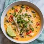 When ready to enjoy again, gently reheat the soup in a saucepan over low heat. Stir occasionally to recombine any separated coconut milk and warm it evenly. If the soup has thickened, add a splash of water or broth to reach your preferred consistency. Avoid boiling vigorously to keep the coconut milk from curdling.