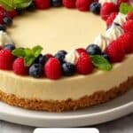 This easy cheesecake recipe features a buttery graham cracker crust and a rich, creamy filling made with cream cheese, vanilla, and a blend of sour cream and heavy cream. Baked to perfection and cooled slowly in the oven, it results in a smooth, luscious dessert that’s perfect for any occasion. Serve chilled and garnish with fresh berries, whipped cream, or a drizzle of chocolate or caramel sauce.