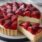 This Traditional French Strawberry Tart features a crisp and buttery pâte sucrée crust filled with smooth, rich vanilla pastry cream and topped with fresh, juicy strawberries glazed in apricot jam for a beautiful, glossy finish. Perfect for a classic French dessert that’s elegant yet approachable.