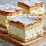 Delight in these elegant Vanilla Custard Cream Squares, featuring flaky puff pastry layers filled with smooth, creamy vanilla custard. Perfect for a sophisticated dessert or an indulgent treat, this recipe combines the crispiness of baked puff pastry with the luscious richness of homemade custard cream.