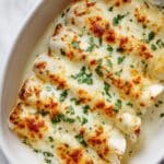 These White Chicken Enchiladas combine tender shredded chicken with a creamy, tangy green chile sauce and melted mozzarella cheese, all wrapped in soft tortillas and baked to golden perfection. This comforting Mexican-inspired casserole is topped with a rich white sauce made from butter, flour, chicken broth, sour cream, and green chiles, delivering a delightful blend of flavors perfect for a family dinner or a casual gathering.